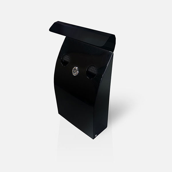 Askkopp Tilt med tak är effektiv, enkel att tömma och utrymmesbesparande med platt design. Passar utmärkt vid entréer, restauranger och uteserveringar. Levereras komplett med skruv och plugg för väggmontage. Levereras som standard pulverlackerad färgen svart RAL 9005.