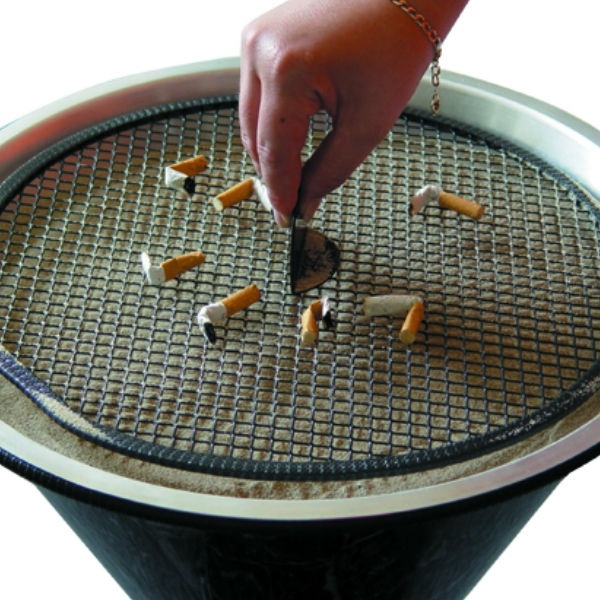 Askkopp Timglaset är en elegant askkopp tillverkad i förzinkad plåt gjord för offentlig miljö.