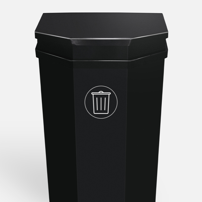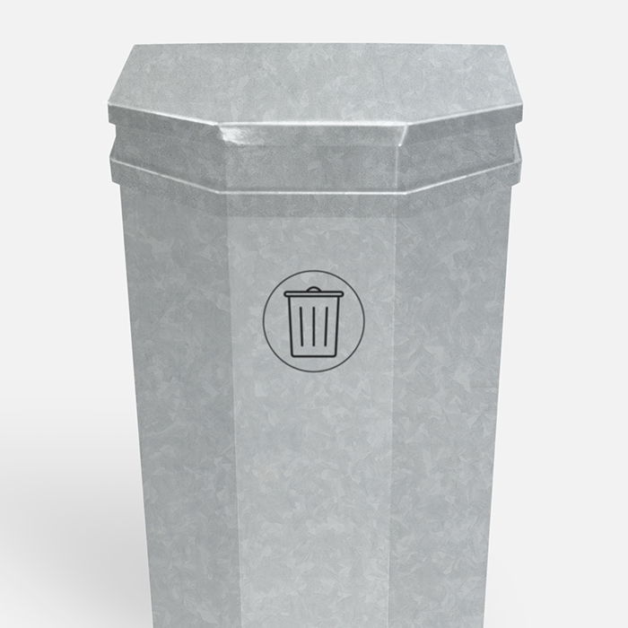 Dekal med papperskorgssymbol finns i vitt och svart utförande.