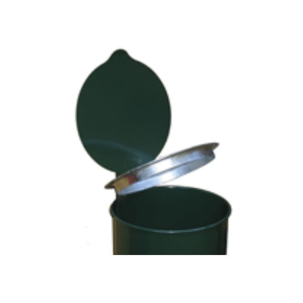 Hundlatrin med lock och klämring för soppåse tillverkad i varmgalvaniserad plåt som pulverlackerats.