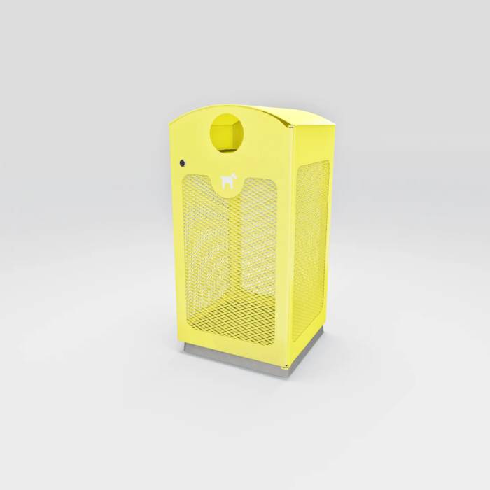 Hundlatrinen Dogge är en svensktillverkad robust och pålitlig lösning för avfallshantering som smälter bra i de flesta miljöer. Tack vare dess design är den inte bara stabil utan även mycket enkel att tömma. Den rundade överdelen förhindrar att skräp placeras ovanpå. Dogge är utrustad med en låsbar dörr och kan både bultas fast eller lämnas fristående. I botten finns 2 stycken Ø 20 mm hål (c/c 200 mm) som kan användas om man vill bultas fast latrinen. Inkastet är Ø140mm.