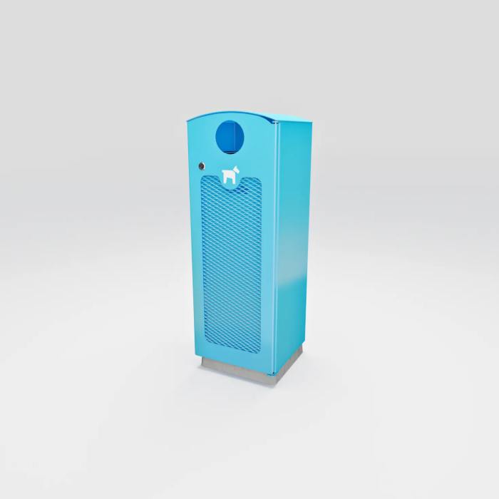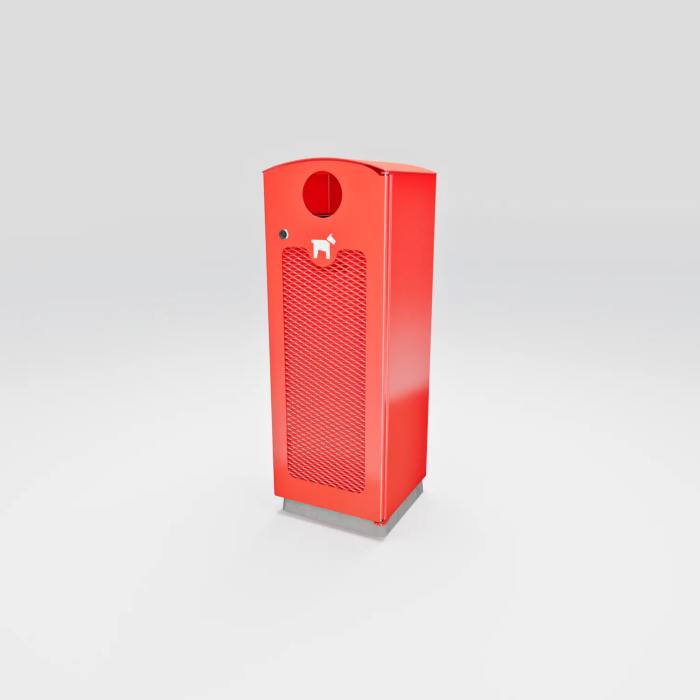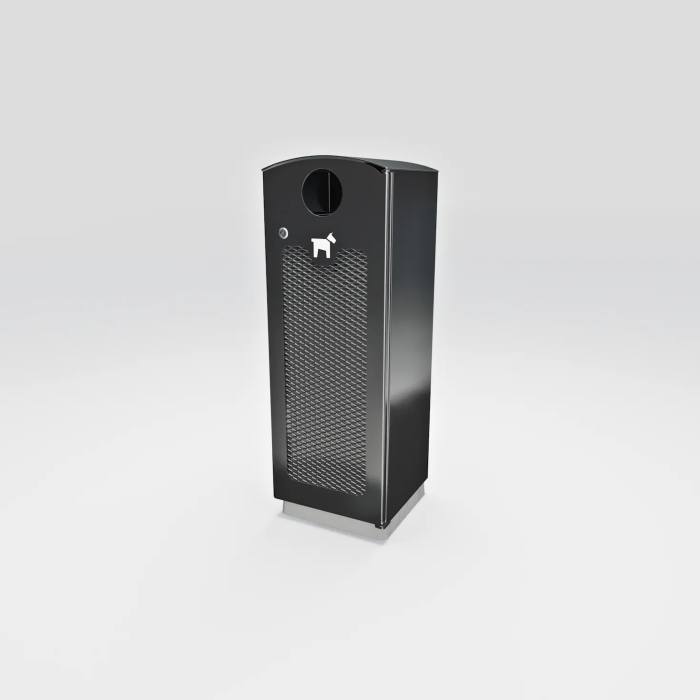 Hundlatrinen Dogge är en svensktillverkad robust och pålitlig lösning för avfallshantering som smälter bra i de flesta miljöer. Tack vare dess design är den inte bara stabil utan även mycket enkel att tömma. Den rundade överdelen förhindrar att skräp placeras ovanpå. Dogge är utrustad med en låsbar dörr och kan både bultas fast eller lämnas fristående. I botten finns 2 stycken Ø 20 mm hål (c/c 200 mm) som kan användas om man vill bultas fast latrinen. Inkastet är Ø110mm.