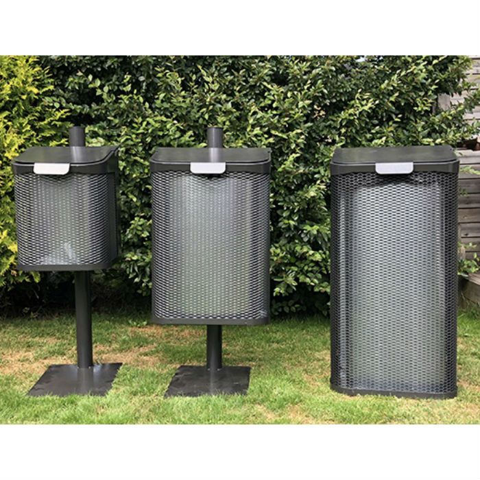 Stilren papperskorg med ett lutande och tungt lock för bättre avrinning samt svårare för fåglar att ta sig in i papperskorgen, finns i storlekarna 30 & 70 Liter.