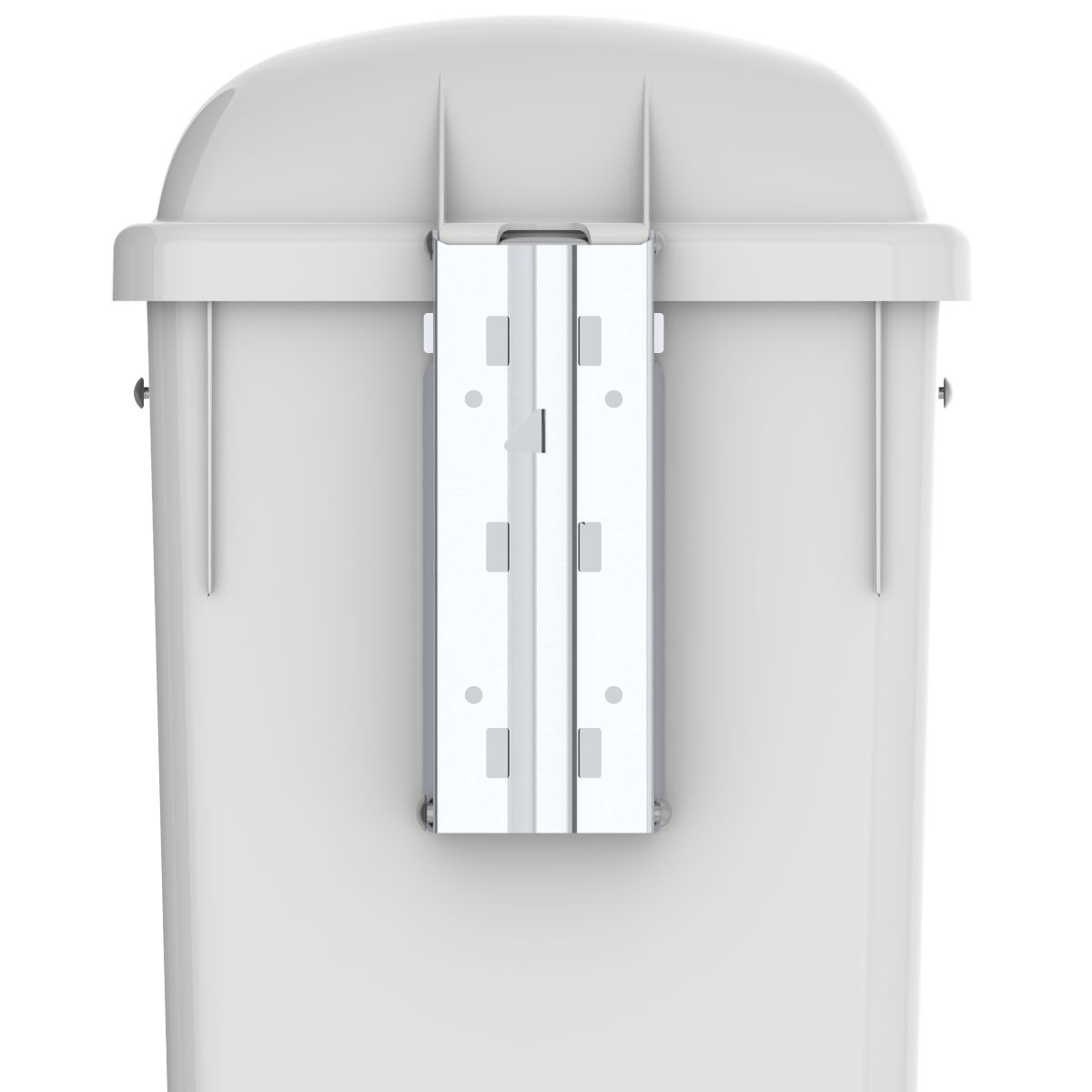 Med hjälp av en trekantsnyckel (ingår ej) på framsidan låser man upp locket för att smidigt tömma papperskorgen. Samtliga ytor är enkla att rengöra, och kroppen är självdränerande. Inkastlocket är utformat för att förhindra fåglar att komma åt inehållet i papperskorgen.