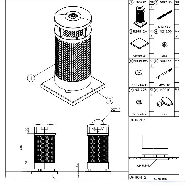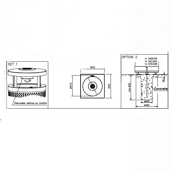 Papperskorg Felix är en rymlig robust papperskorg med integreread askkopp i locket. Behållaren till askkoppen fästs enkelt med bajonettfattning under locket vilket gör den lätt att tömma. Papperskorgen Felix har en volym på 70L och är fristående. Gängstång och betongplatta medföljer för ev fastgjutning.