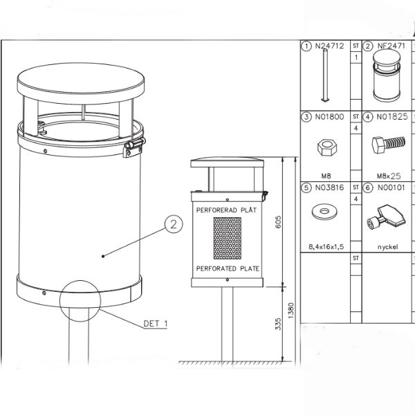 Denna papperskorg passar perfekt utanför entréer, köpcentrum, parkeringsplatser och liknande platser med mycket folk i rörelse.