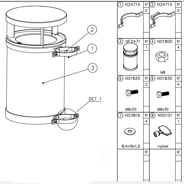 Jakob är en mindre papperskorg försedd med tak som rymmer 35 liter. Den är tillverkad i 3 mm tjockt stål som elförzinkats, passiverats och pulverlackerats. Jakob är tillverkad för att monteras på befintlig stolpe med en diameter på 105-120 mm