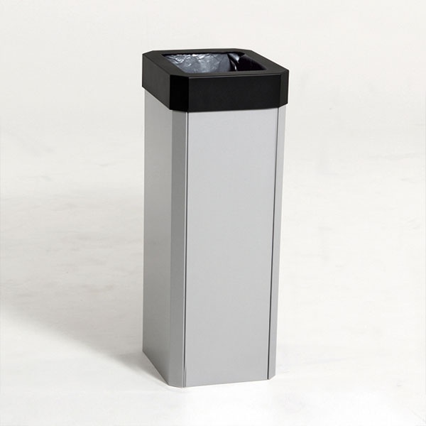 Papperskorg med öppet inkast utan lock. Robust konstruktion med varmförzinkad 1,5 mm stålplåt som pulverlackerats.