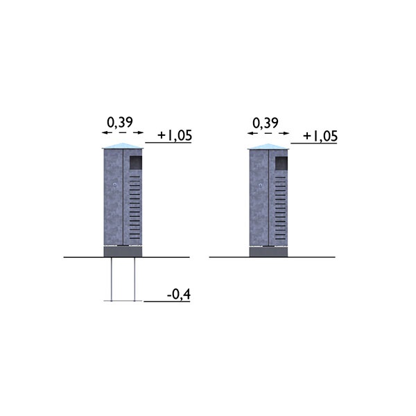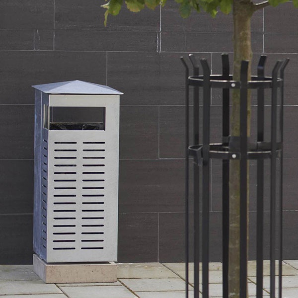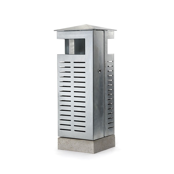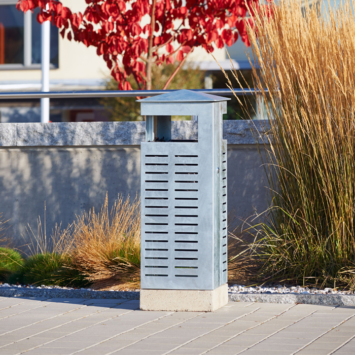 Denna papperskorg finns både som fristående och för nedgrävning.