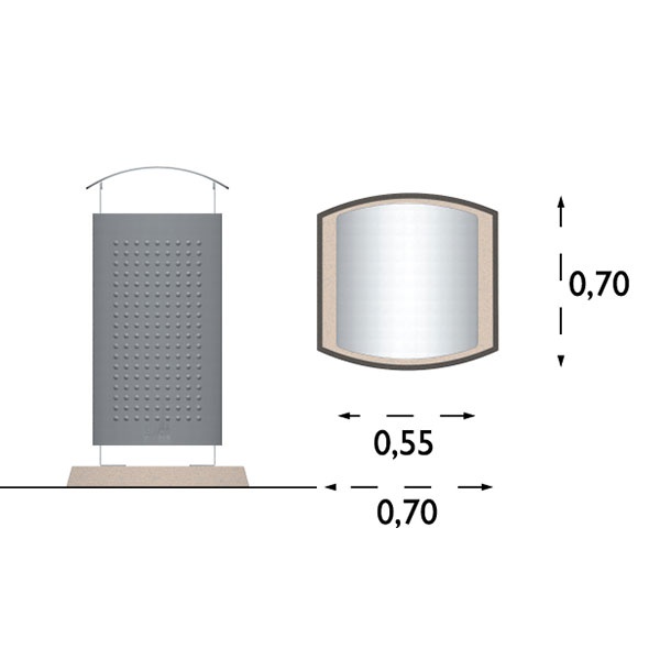 Material: Stomme av 5mm varmförzinkad stålplåt. Lock av 4mm, samt dörrar av 2mm varmförzinkad stålplåt.