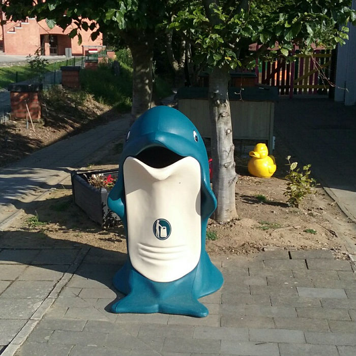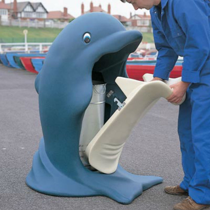 Splash är är denna är en glad delfin som sprider glädje och uppmuntrar barn att hantera avfall i rätt. Delfinen är tillverkad av durapol med en innerbehållare av förzinkat stål.