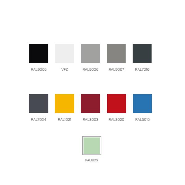 Papperskorgen går att få i nedan 11 kulörer som standard, önskas annan RAL-färg går detta att få mot offert.
