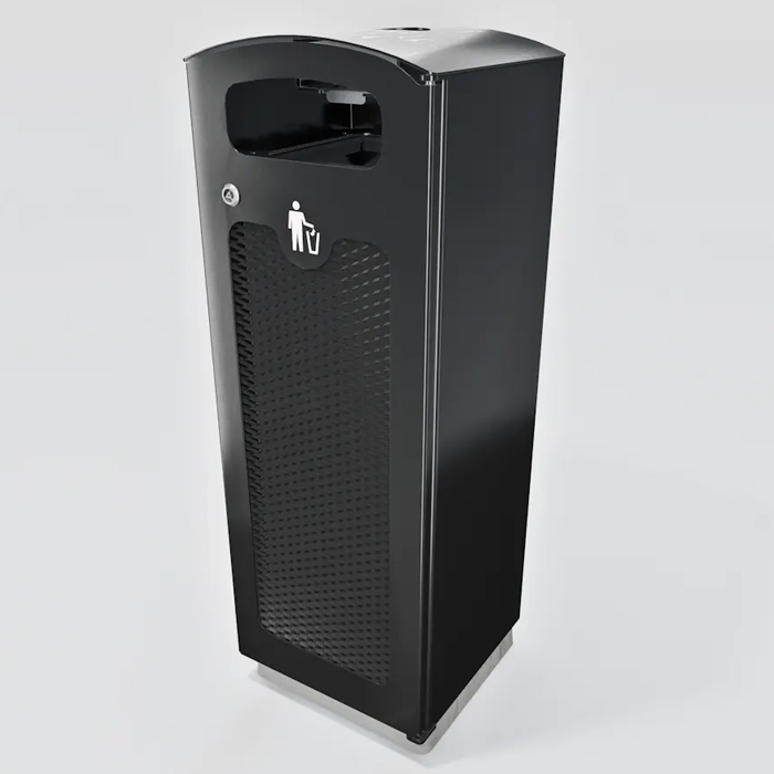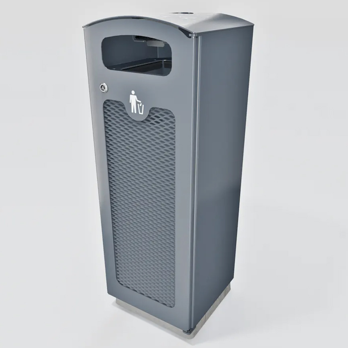 Papperskorgen Tack är en svensktillverkad robust och pålitlig lösning för avfallshantering som smälter in i de flesta miljöer. Tack vare dess design är den inte bara stabil utan enkel att tömma. Den rundade överdelen har en integrerad askkopp samtidigt som den förhindrar att skräp placeras ovanpå. Tack är utrustad med en låsbar dörr och kan både bultas fast eller lämnas fristående. I botten finns 2 stycken Ø 20 mm hål (c/c 200 mm) som kan användas om man vill bultas fast korgen.