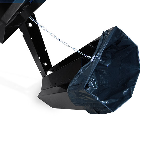 Papperskorgen är utrustad med en bygel som håller sopsäcken på plats på ett snyggt och smidigt sätt. Vid säckbyte fäller man enkelt upp bygeln och papperskorgen kan då lutas 45 grader framåt. Det kraftiga locket skyddar mot fåglar och andra djur.