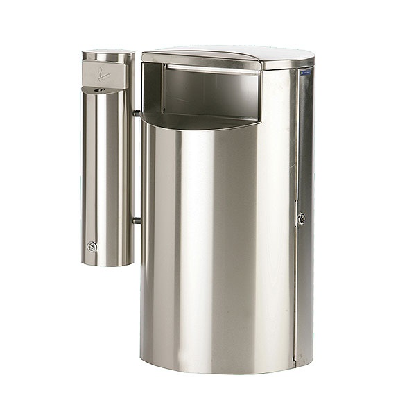 Perfekt kombination av papperskorg och askkopp i ett. Tillverkad för bästa hållbarhet i snygg klassisk design. Vädertålig och slitstark där öppningen är speciellt utformad för att hålla regn och fåglar borta.