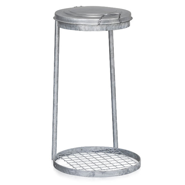 Säckhållare i galvaniserad plåt. Klämring för plast- eller pappersäck.