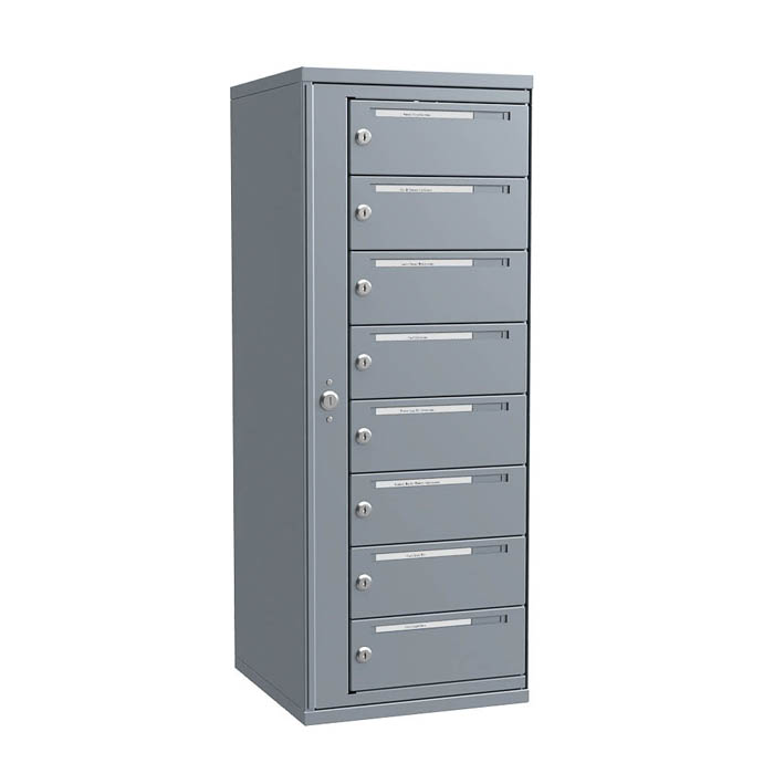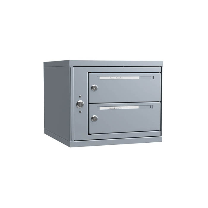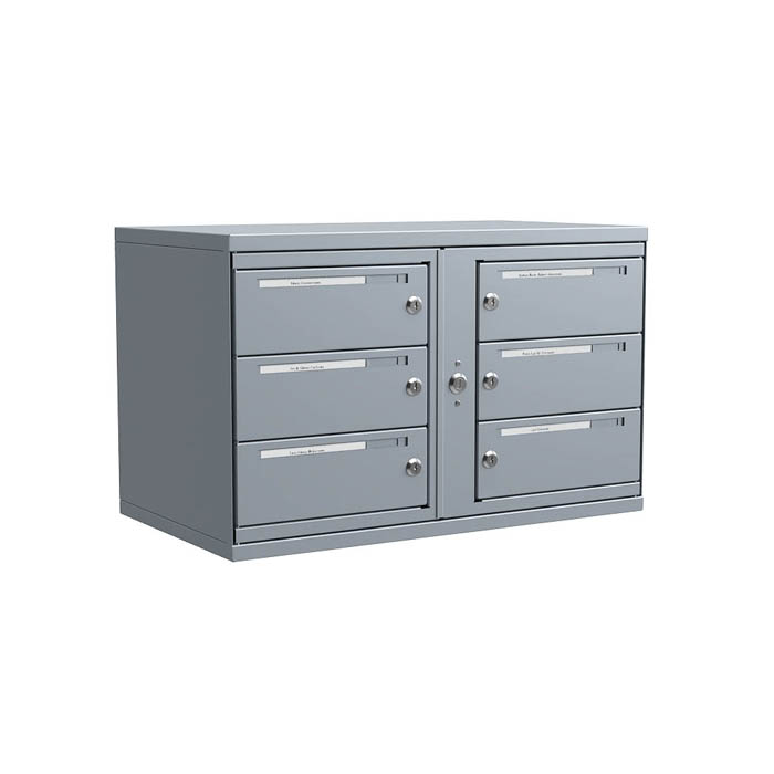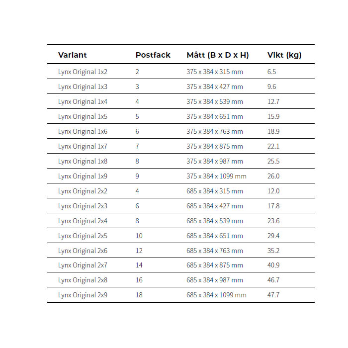 Svensktillverkad fastighetsbox i klassiskt utförande med modeller från 2 upp till 18 postfack per enhet. Den kan monteras antingen upphängd på vägg, infälld eller på stativ (stativ finns som tillval). För att undvika att oönskad post och reklam lagras uppe på boxarna finns snedtak att montera (se tillval).