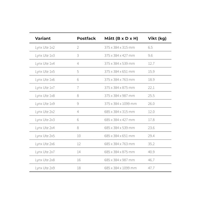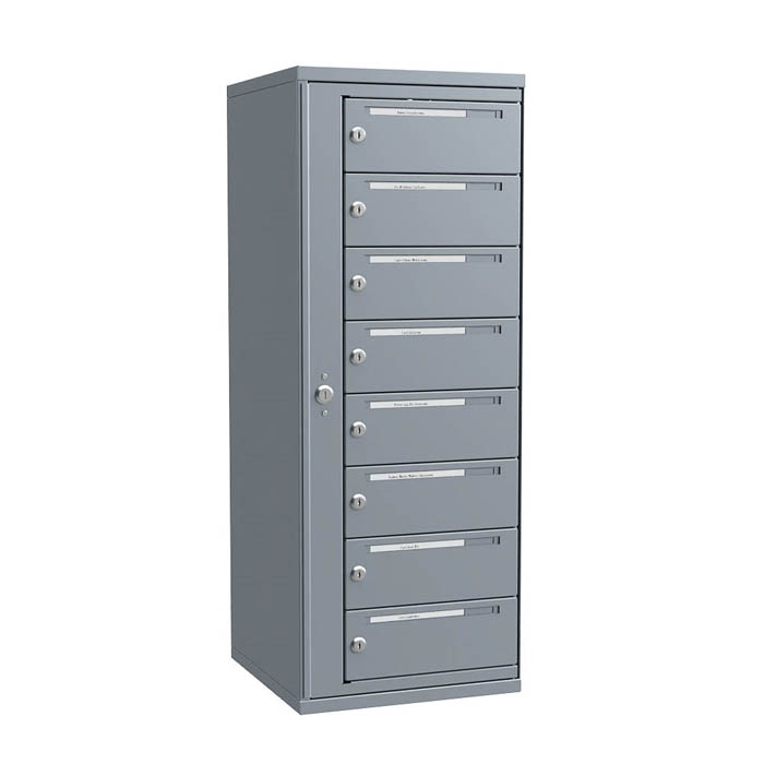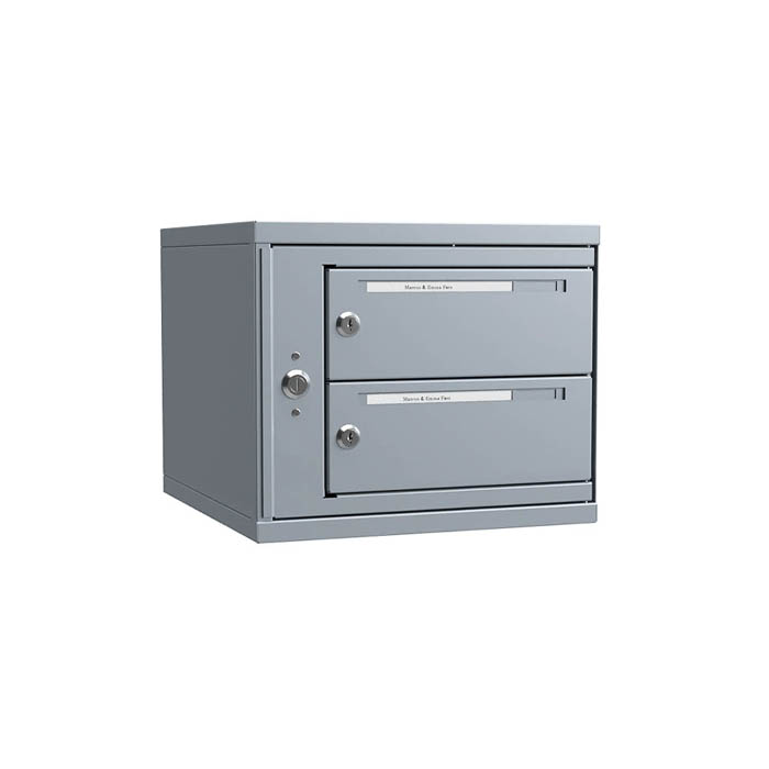 Boxen levereras i Silvergrå RAL 7001 och finns flera olika utförande, 2 till 18 fack, se rullistan.