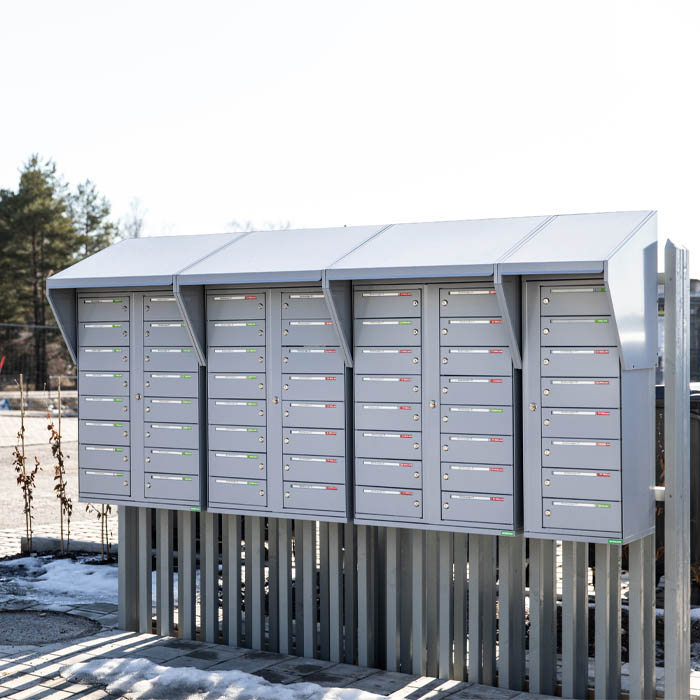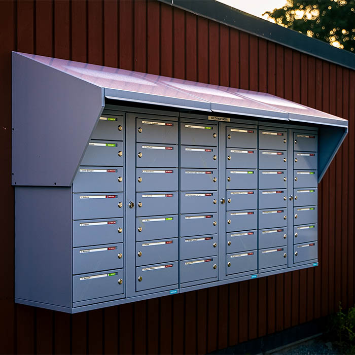 Skyddas inte boxen av ett tak måste snedtak köpas till, detta för att skydda skåpet mot snö osv. Detta är även ett krav från posten.