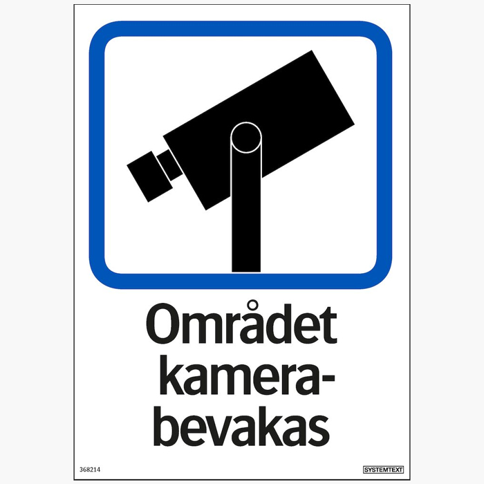 Informera att området kameraövervakas med denna skylt i hårdplast i storleken 210x297 mm. Skylten kan monteras på de flesta yter med antingen självhäftande tejp eller skruv (hål borras själv då den levereras oborrad).