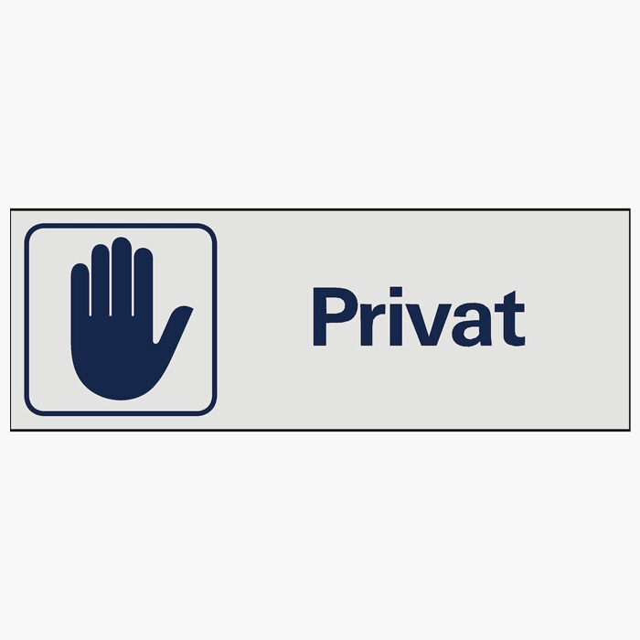 Skylt i storleken 225mm x 80mm som informerar om privat område, tillverkar i aluminium får lång hållbarhet.