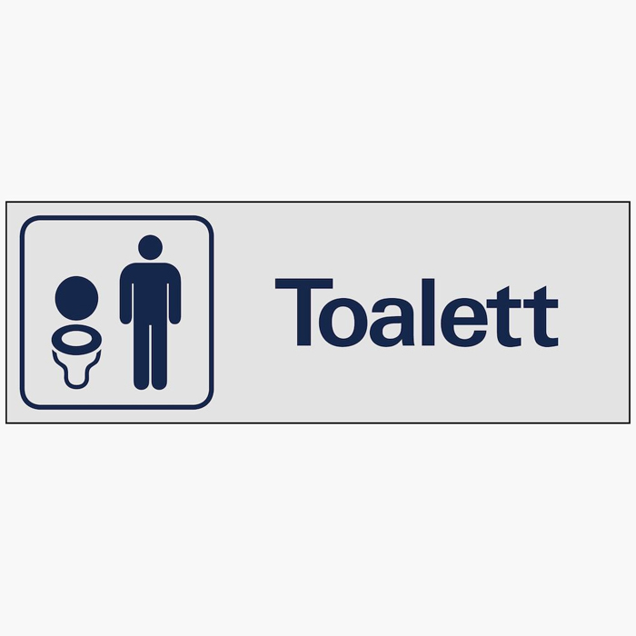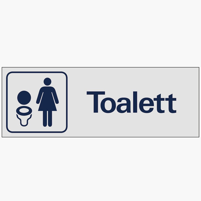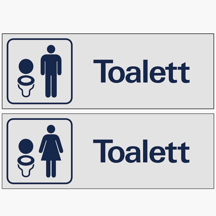 En toalettskylt med symbol för dam respektive herr, tillverkad i aluminium och en storlek på 225x80 mm.