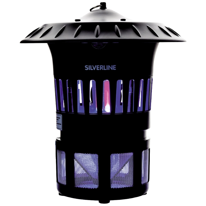 Med ett attraktivt lockljus för insekter dra sig denna produkt till sig mygg, flugor och insekter, helt utan användning av gift. en fläkt suger in de döda insekterna i en behållare där de sedan torkar.