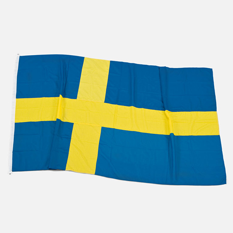 Svensk båtflagga i 160 g marinpolyester, ett beprövat och slitstarkt tyg som är vävt av dubbelt, tvåtrådigt, tvinnat garn. Detta material ger, tillsammans med sömnaden vi använder, extra starka flaggor.