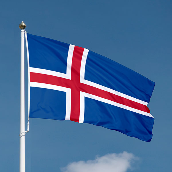 Isländsk flagga i 160 g marinpolyester, ett beprövat och slitstarkt tyg som är vävt av dubbelt, tvåtrådigt, tvinnat garn. Tillsammans med sömnaden vi använder ger detta material extra starka flaggor.
