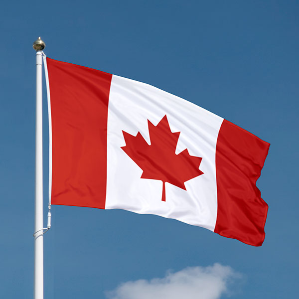 Kanadensisk flagga i 160 g marinpolyester, ett beprövat och slitstarkt tyg som är vävt av dubbelt, tvåtrådigt, tvinnat garn. Tillsammans med sömnaden vi använder ger detta material extra starka flaggor.