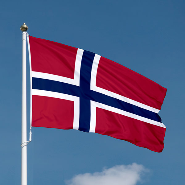 Norsk flagga i 160 g marinpolyester, ett beprövat och slitstarkt tyg som är vävt av dubbelt, tvåtrådigt, tvinnat garn. Tillsammans med sömnaden vi använder ger detta material extra starka flaggor.