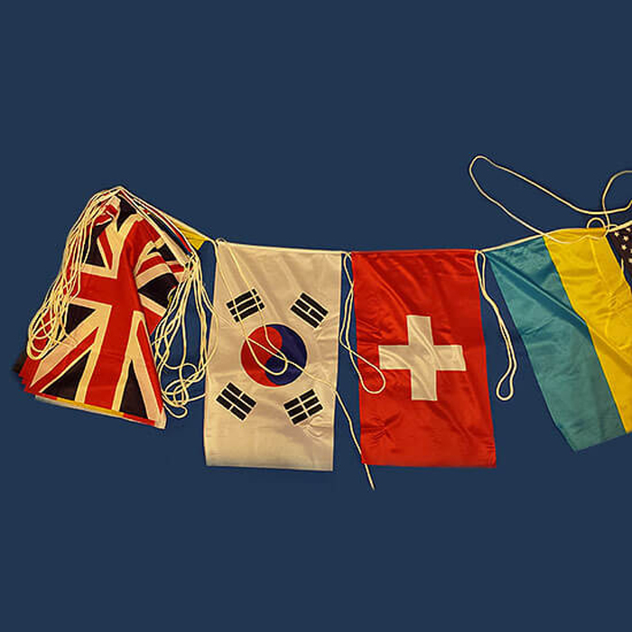 Pynta till festen, företagsevenemanget eller festivalen med detta flaggspel som består av 16 st internationella flaggor i storleken 30x50 cm. Flaggorna är monterade på en 17 meters lång lina.
