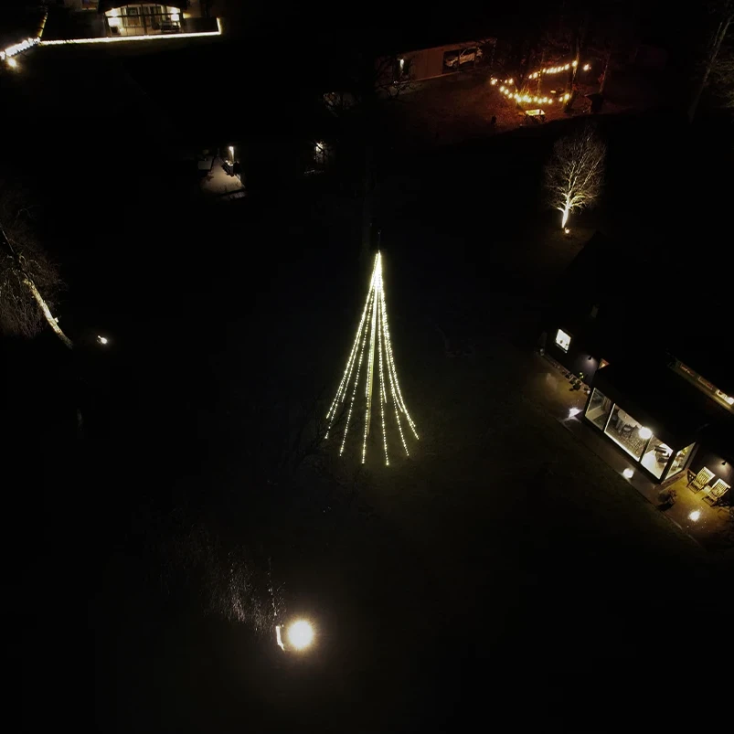 Skapa en mysig stämning i trädgården med det varmvita skenet från Glimma Standard. Julbelysningen är IP44-klassad, så den klarar alla väder, och vi ger dig två års garanti.