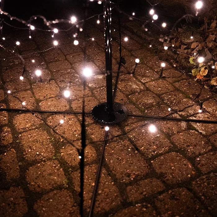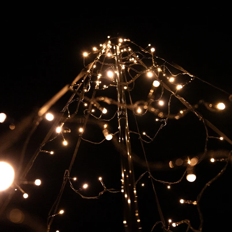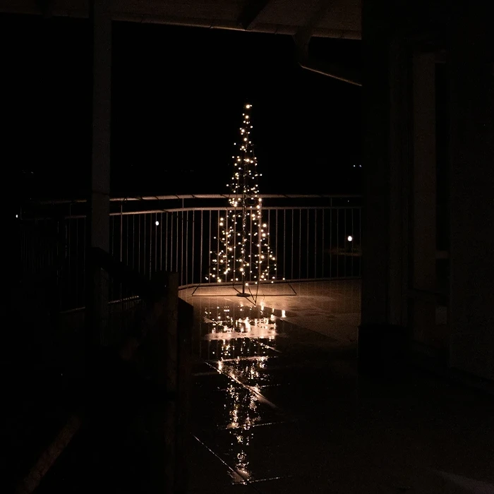 Med en bottendiameter på upp till 1,5 meter ser granen proportionerlig och elegant ut. Transformatorn är IP44-klassad och vi rekommenderar att hålla den skyddad från väder för bästa hållbarhet. Tre års garanti ingår.