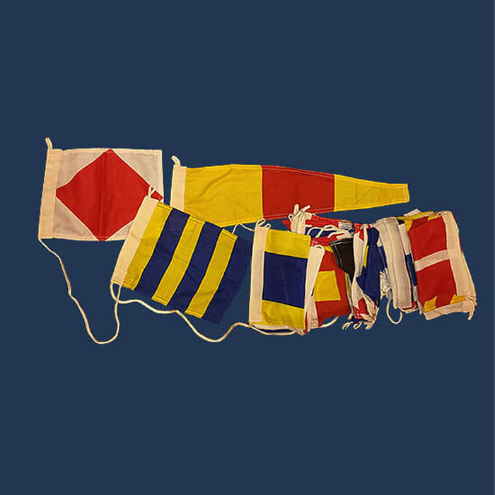 Med ett signalspel pyntar man båten, festen eller andra evenemang på ett elegant marint sätt. Spelet består av 40 st flaggor som är ca. 20x24 cm och monterade på en lina på 20 meter.