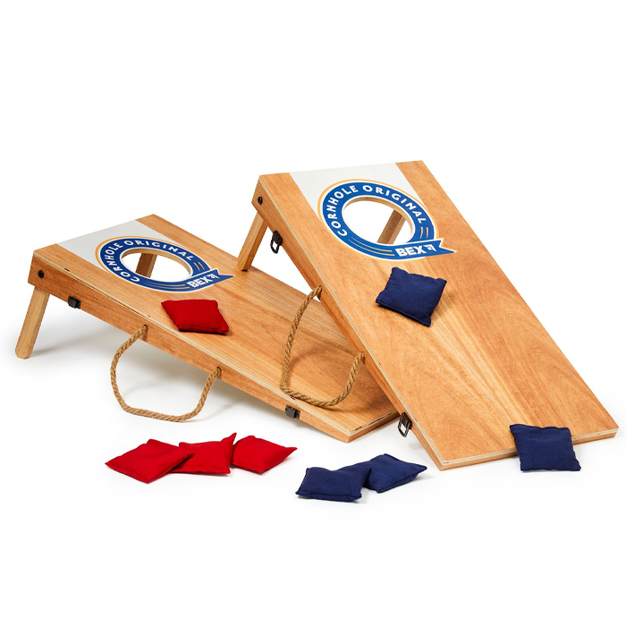 Cornhole och som det också kallas Bean Bag är ett kul spel där två lag spelar mot varandra, man samlar poäng genom att kasta sin påse på spelskivan och ska försöka få påsen i hålet eller på skivan. Man får ett poäng för varje påse som är på skivan och tre poäng för varje påse som kastas ner i hålet eller blir knuffad ner. Räkna poängen efter alla 8 påsar har kastats och använd uteslutningsmetoden. Totalt: Lag 1 poäng - Lag 2 poäng. Spelet är över när ett av lagen har nått 21 poäng eller mer.