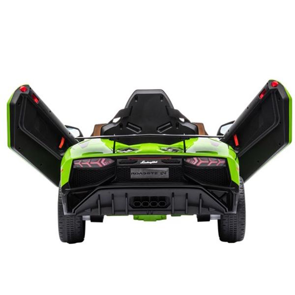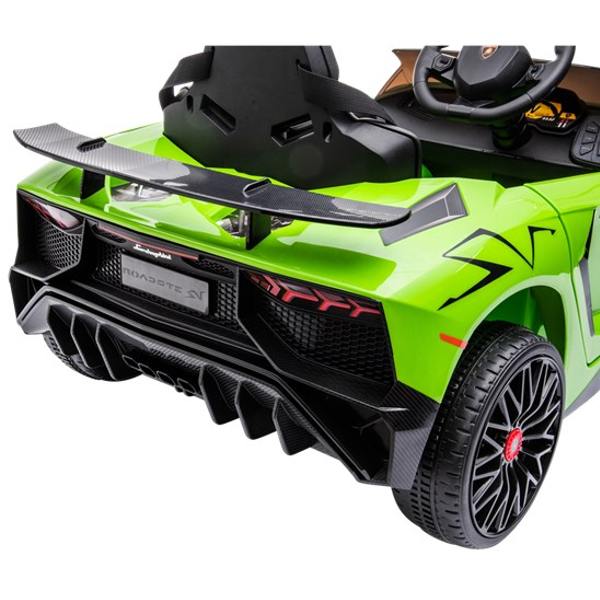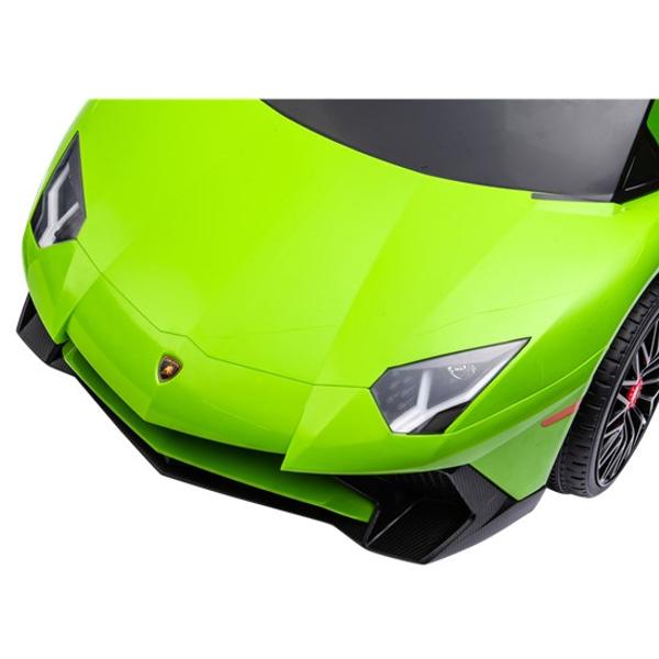 Nu kan ditt barn köra drömbilen Lamborghini Aventador SV i en genomtänkt design och sportig limegrön färg. Bilen tillverkas på licens från Lamborghini-fabriken och öppnas givetvis som en riktig Lamborghini!