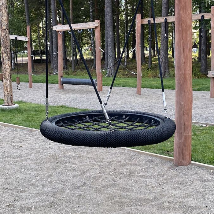 Populära och kraftigt fågelbogungan i nät gör att flera barn kan gunga samtidigt, finns i både 90 respektive 120 cm i diameter. Gungan har en robust design och ståltråd monterade i upphängningsrepen.