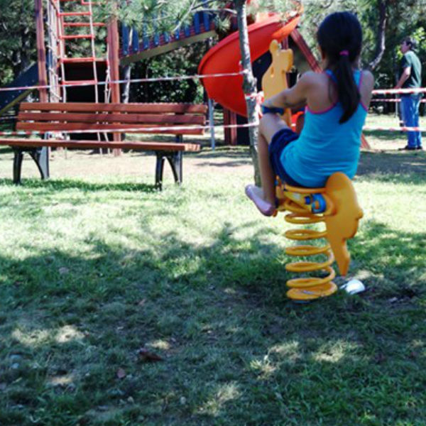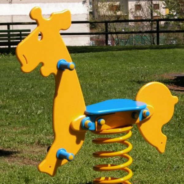 Fjädergunga Giraffen är tillverkad för att klara tuffa tag i den offentliga miljön.