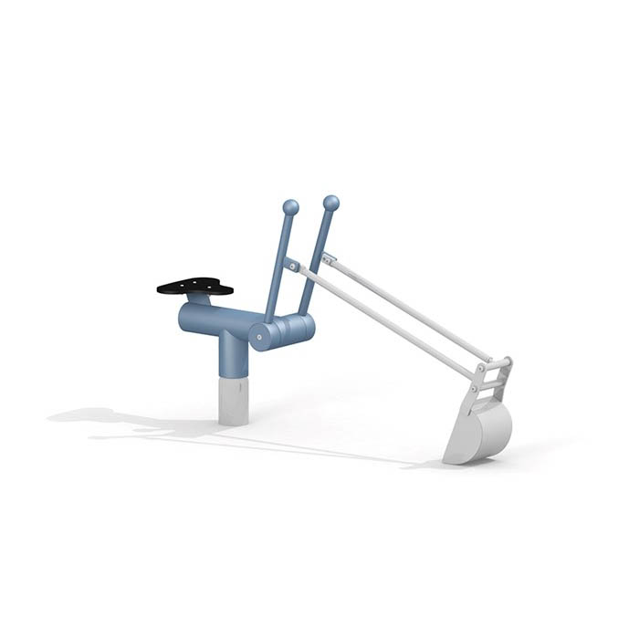 En klassiskt tålig grävmaskin som låter barnen gräva i sandlådan, utrustad med spakar och vridfunktion. I denna varianten får man en tålig och fint designad grävskopa som på ett estetiskt sätt passar fint in på lekplatsen eller på stranden då den både är TÜV-märkt och EN 1176 certifierad för offentlig utomhusanvändning.