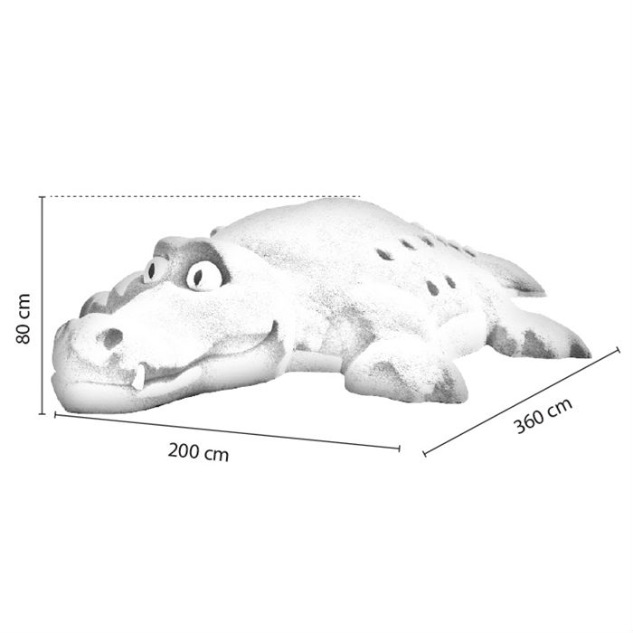 Ett gummidjur format som en krokodil som med sitt utseende höjer intresset för lekplatsen med sin spännande design. Gummidjuret krokodilen vänder sig främst till barn mellan 2 och 10 år, figuren är färgglad och bidrar till fantasifullt lek. Figuren är underhållsfri och tillverkad i UV-beständigt EPDM-gummi.