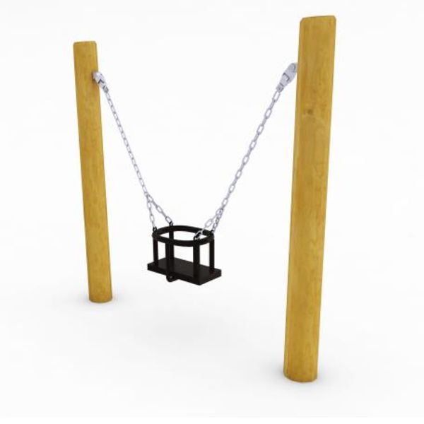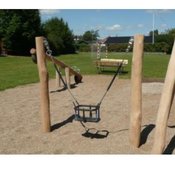 Gungställning Glion med plats för 1 gunga är försedd med naturliga former och smälter på så sätt bra in i skogsmiljön. Denna gungställning ger lekplatsen extra atmosfär.