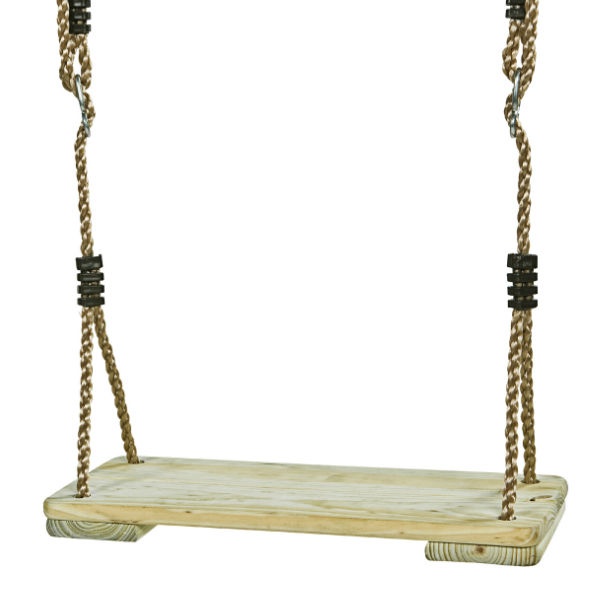 Gungsits i trä är perfekt för härlig trädgårdslek. De 4 fästpunkterna i sitsen gör att man får extra god balans. Gungsitsen är försedd med metallringar för infästning.