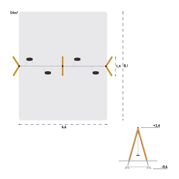 Gungställning med plats för fyra fritt valbara gungsäten. Visst minns du det pirrande suget i magen när gungan fått upp farten. Och minns hur stolt du var första gången du lyckades sätta fart själv. Att gunga är paradexemplet på en lek där sinnesupplevelse är direkt förbunden med motorisk färdighet. Inte så konstigt att gungställningen ofta blir en samlingspunkt på en lekplats. En gunga är en spännande utmaning även för lite äldre barn.