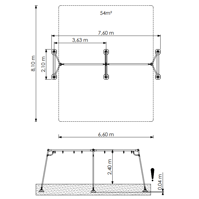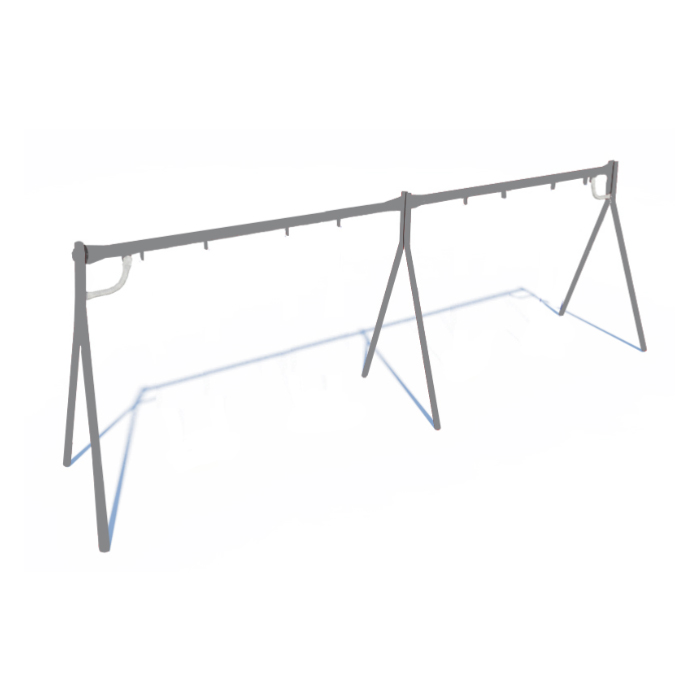 Gungställning med plats för fyra gungor, tillverkad för att klara tuffa tag i offentliga miljöer. Gungställningar är lika självklar på lekplatsen som dagiset eller varför inte stranden.