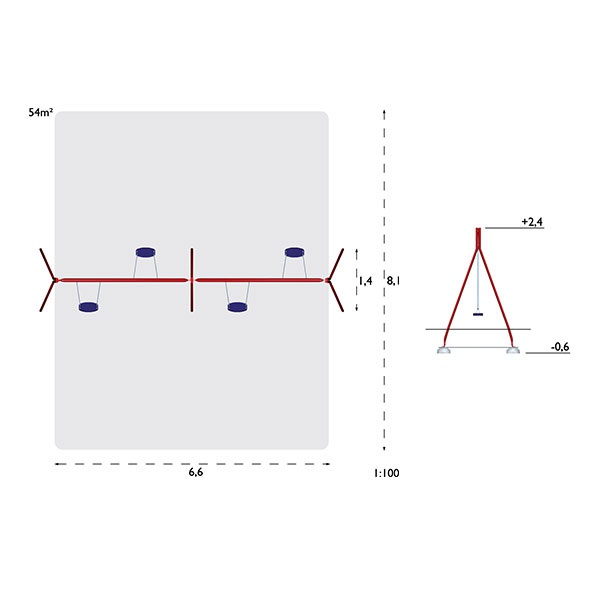 Gungställning med plats för fyra fritt valbara gungsäten. Visst minns du det pirrande suget i magen när gungan fått upp farten. Och minns hur stolt du var första gången du lyckades sätta fart själv. Att gunga är paradexemplet på en lek där sinnesupplevelse är direkt förbunden med motorisk färdighet. Inte så konstigt att gungställningen ofta blir en samlingspunkt på en lekplats. En gunga är en spännande utmaning även för lite äldre barn.