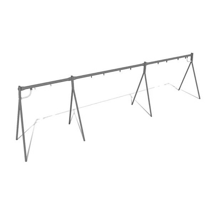 En stor gungställning med plats för fem platser i grått pulverlackerat utförande. Tillverkad för att klara de robusta fårhållandena som råder i den offentliga miljön. Gungställningar är lika självklar på lekplatsen som dagiset eller varför inte stranden.