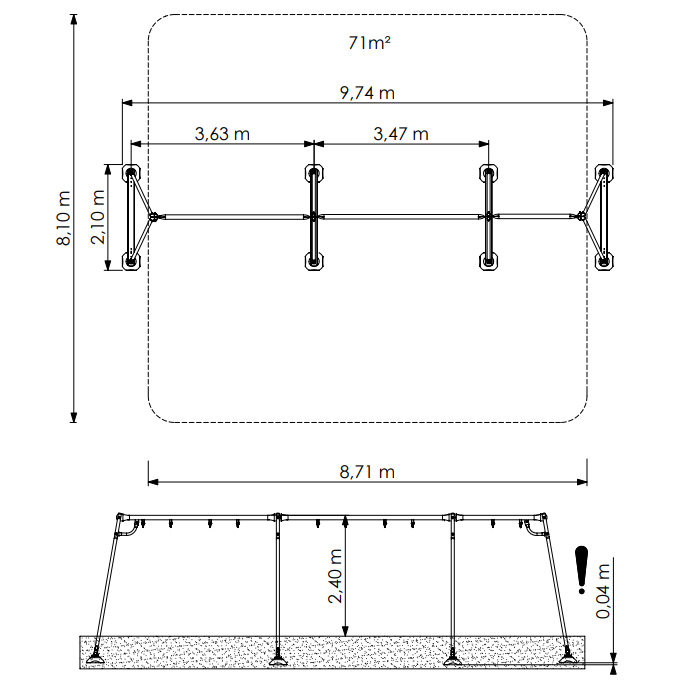 Enkel att montera och förankras genom nedgrävning av medföljande förankringsfundament.