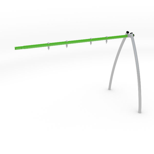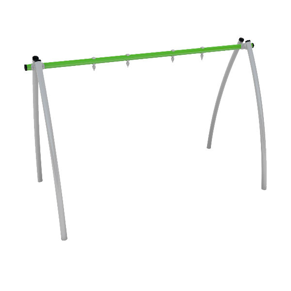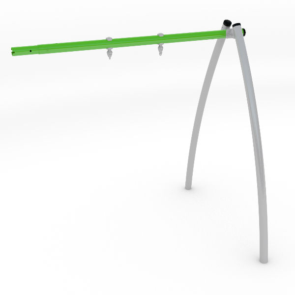 Gruppgunga Omega med plats för två fritt valbara gungsäten. En naturlig samlingsplats för barn i olika åldrar att leka tillsammans men också att bara träffas och umgås. Omega är utbyggbar då gungställningen kan byggas ut med valfritt antal gungplatser.