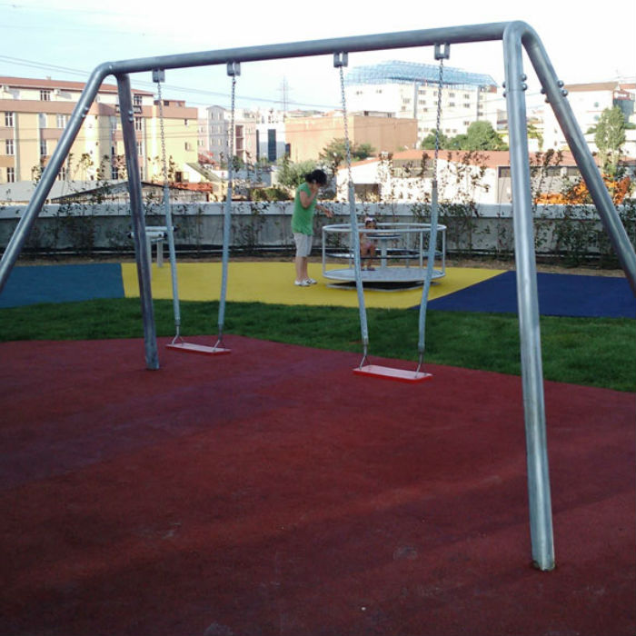 Gungstativ i stål av mycket hög kvalitet med plats för två gungor. Gungstativet är gjort för att klara av vad det skandinaviska klimatet har att erbjuda. Gungställning är lika självklar på lekplatsen som dagiset eller varför inte stranden.